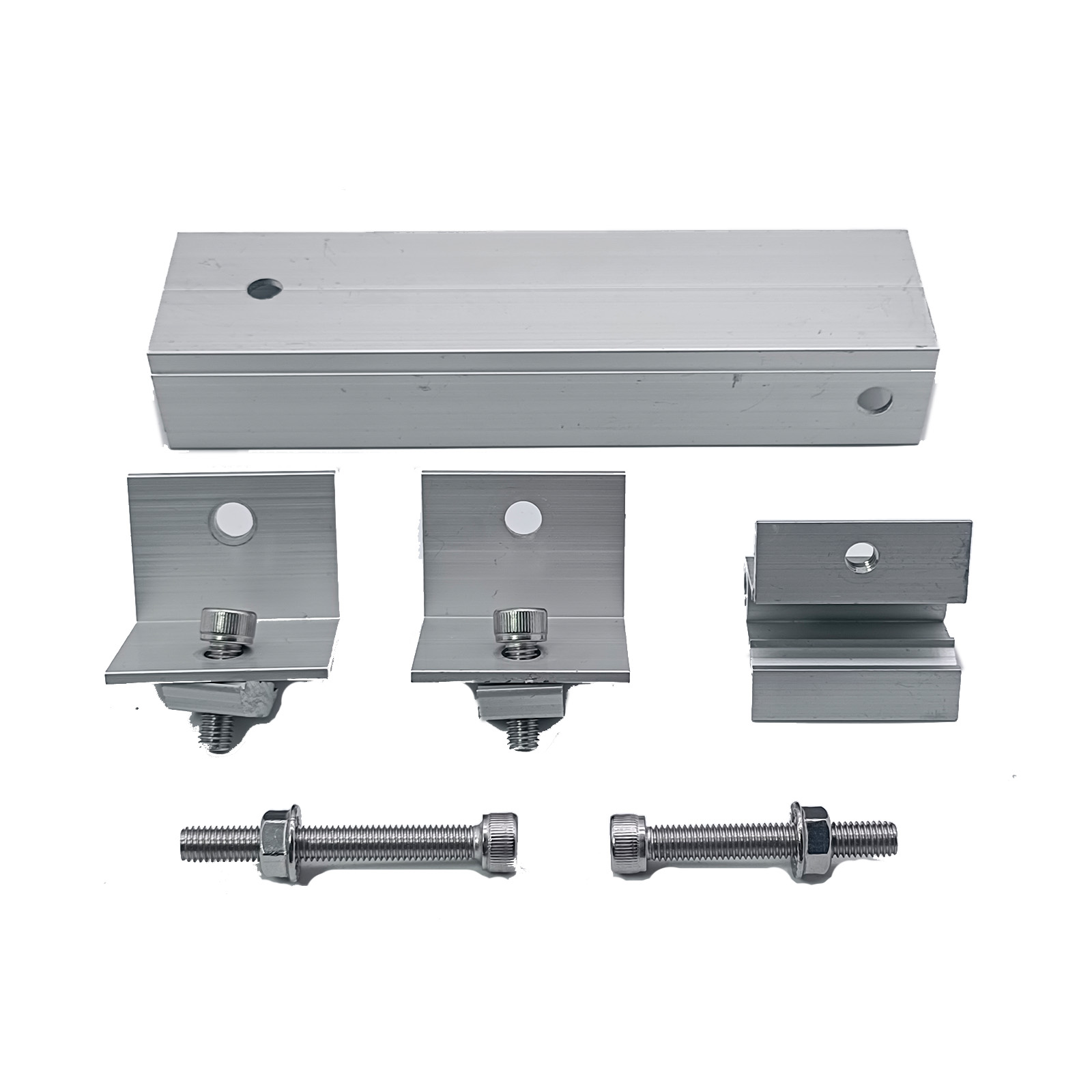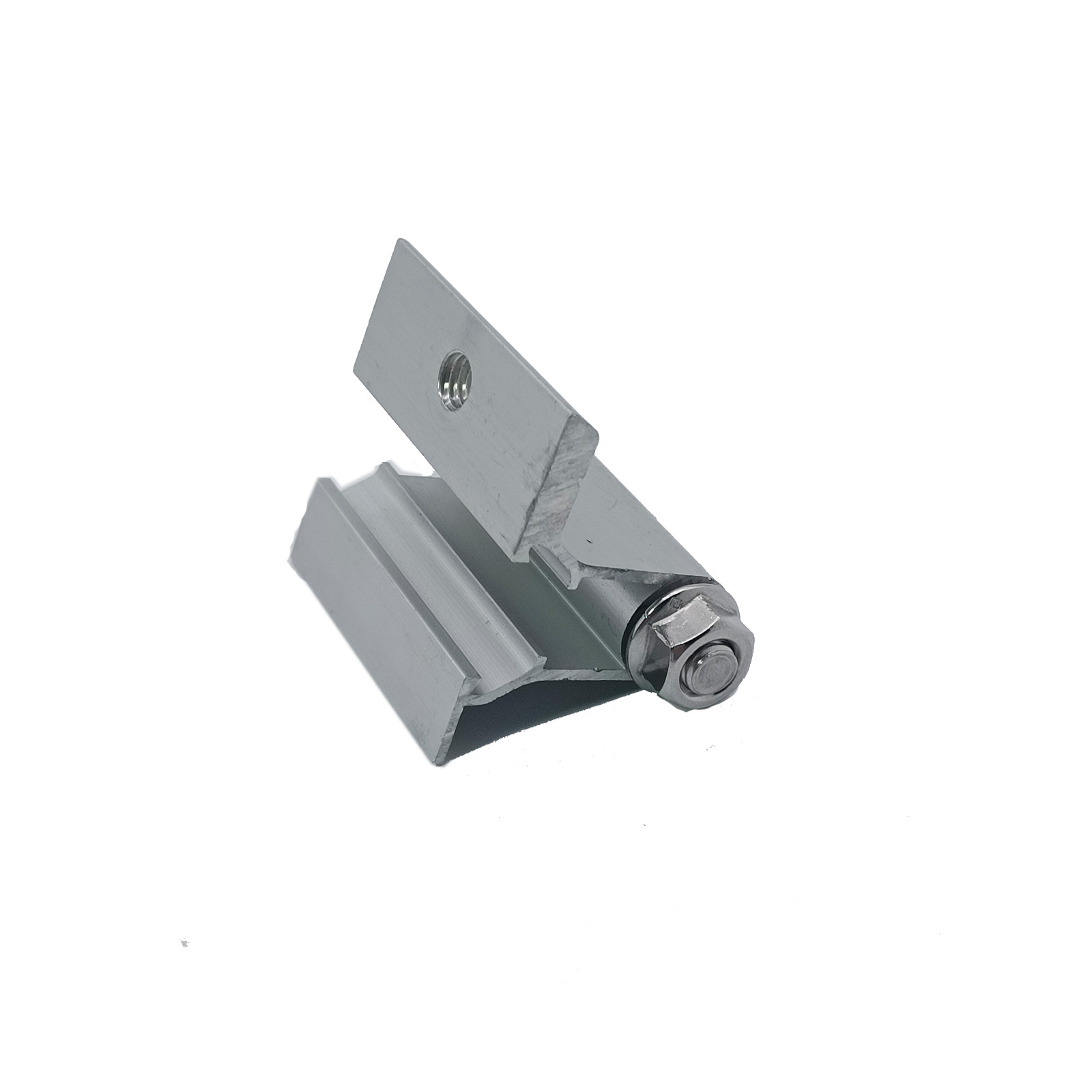 المشبك الشمسي هو ملحق آخر من الألومنيوم يستخدم لتأمين الألواح الشمسية على قضبان الألومنيوم. عادةً ما تكون التركيبات مصنوعة من سبائك الألومنيوم، التي تتمتع بقوة عالية ومقاومة للتآكل، مما يضمن عدم تعرض الألواح الشمسية للتلف أو التواء.